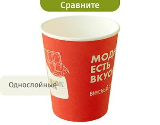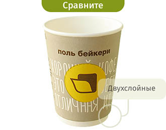 Двухслойные стаканчики изготавливают из двух слоев прочного картона. Они подходят для горячих напитков, так как дольше сохраняют тепло и не обжигают руки. Такая конструкция очень востребована у заведений быстрого питания, особенно в зимний период.