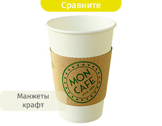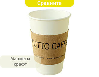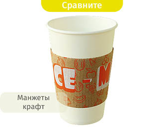 Для производства манжет крафт используют гофрированный картон высокой плотности. Они надежно защищают руку от высокой температуры и широко используются в фаст-фудах для кофе и чая.