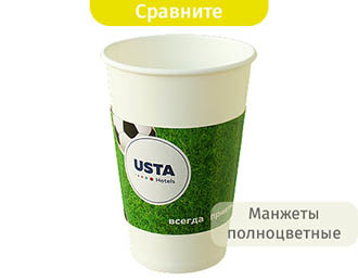 Полноцветные манжеты изготавливают из качественного одностороннего мелованного картона. На них офсетным способом наносится изображение любой сложности. Они дают хорошую термоизоляцию и выглядят очень ярко, привлекая внимание клиентов.