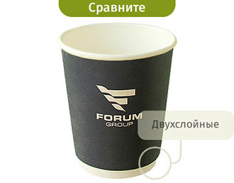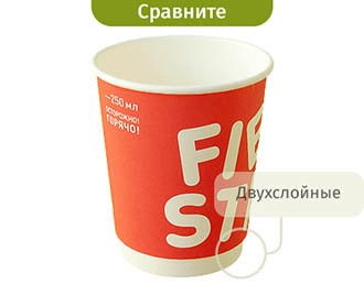 Двухслойные стаканчики изготавливают из двух слоев прочного картона. Они подходят для горячих напитков, так как дольше сохраняют тепло и не обжигают руки. Такая конструкция очень востребована у заведений быстрого питания, особенно в зимний период.