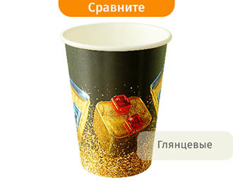 Глянцевые стаканчики изготавливают из плотного мелованного картона, на внутреннюю поверхность которого наносят слой полимера, защищающий от размокания.